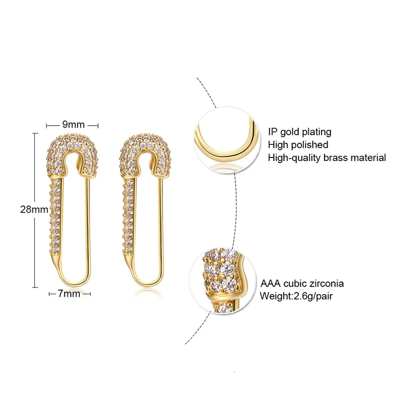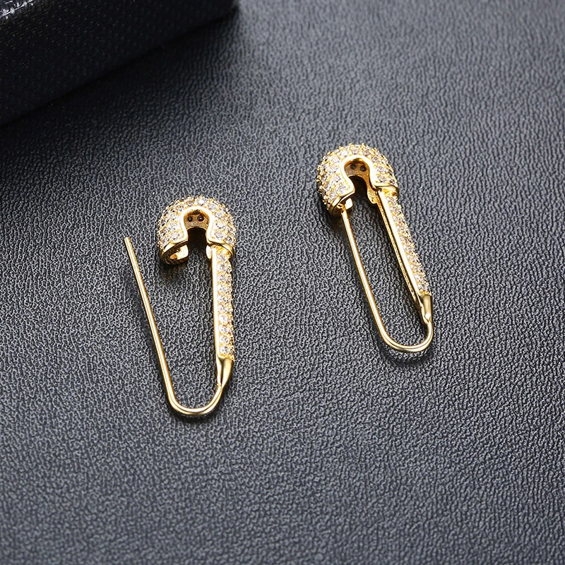 BEST Gold Safety 925silver color Pin Earring Black CZ Stone Zircon Stud Earring For Women Charm Jewelry