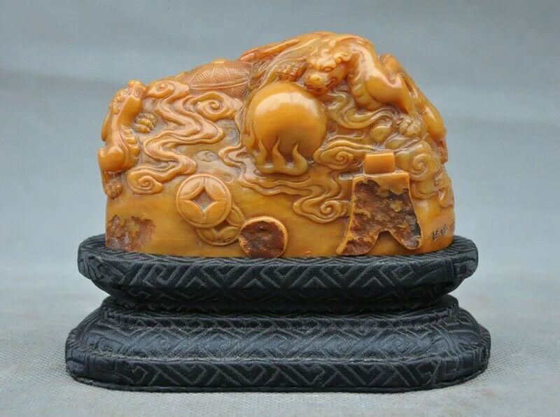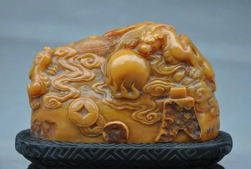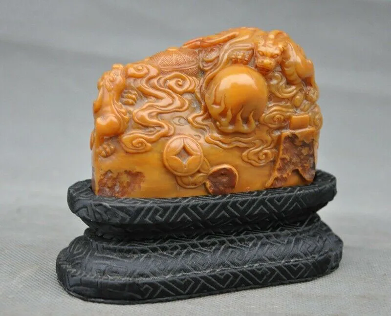 wedding decoration Natural Tianhuang Shoushan Stone carved Pixiu beast emperor Seal stamp signet